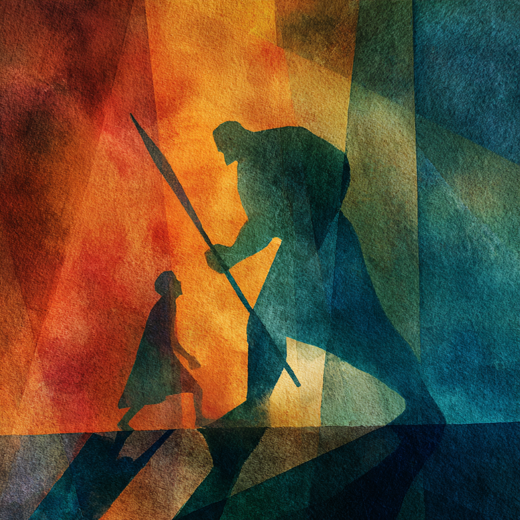 Little David had to tiptoe just to reach up to his knee"Come on!" said the giant, raging and striding